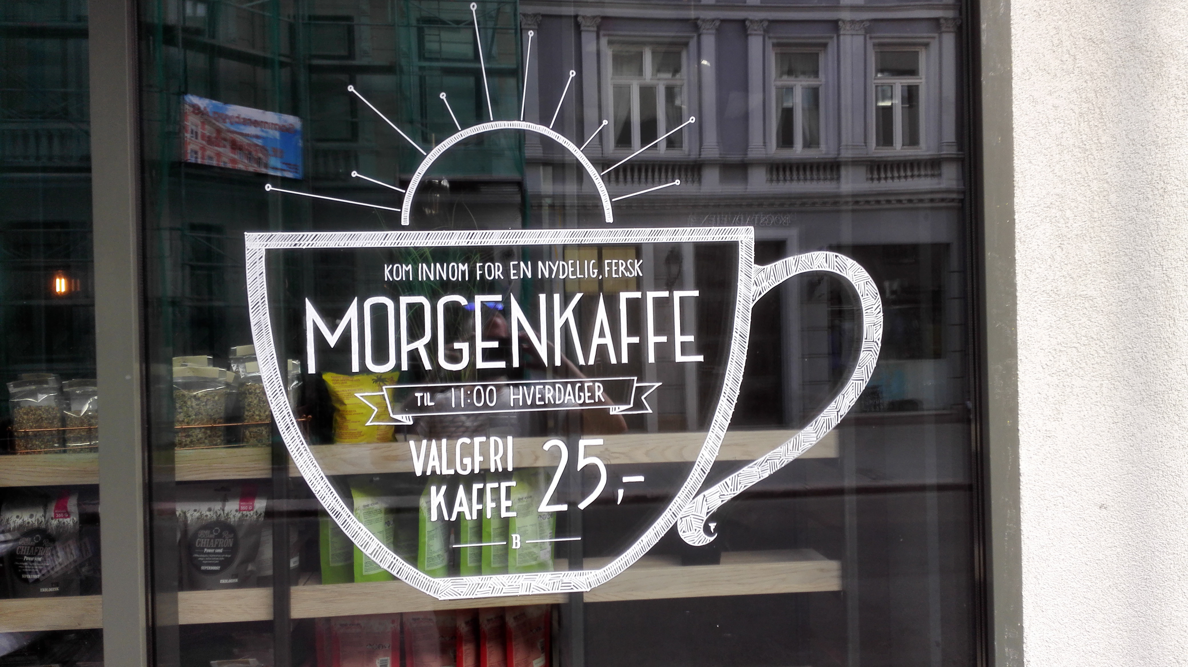Hand-drawn signs and menus.